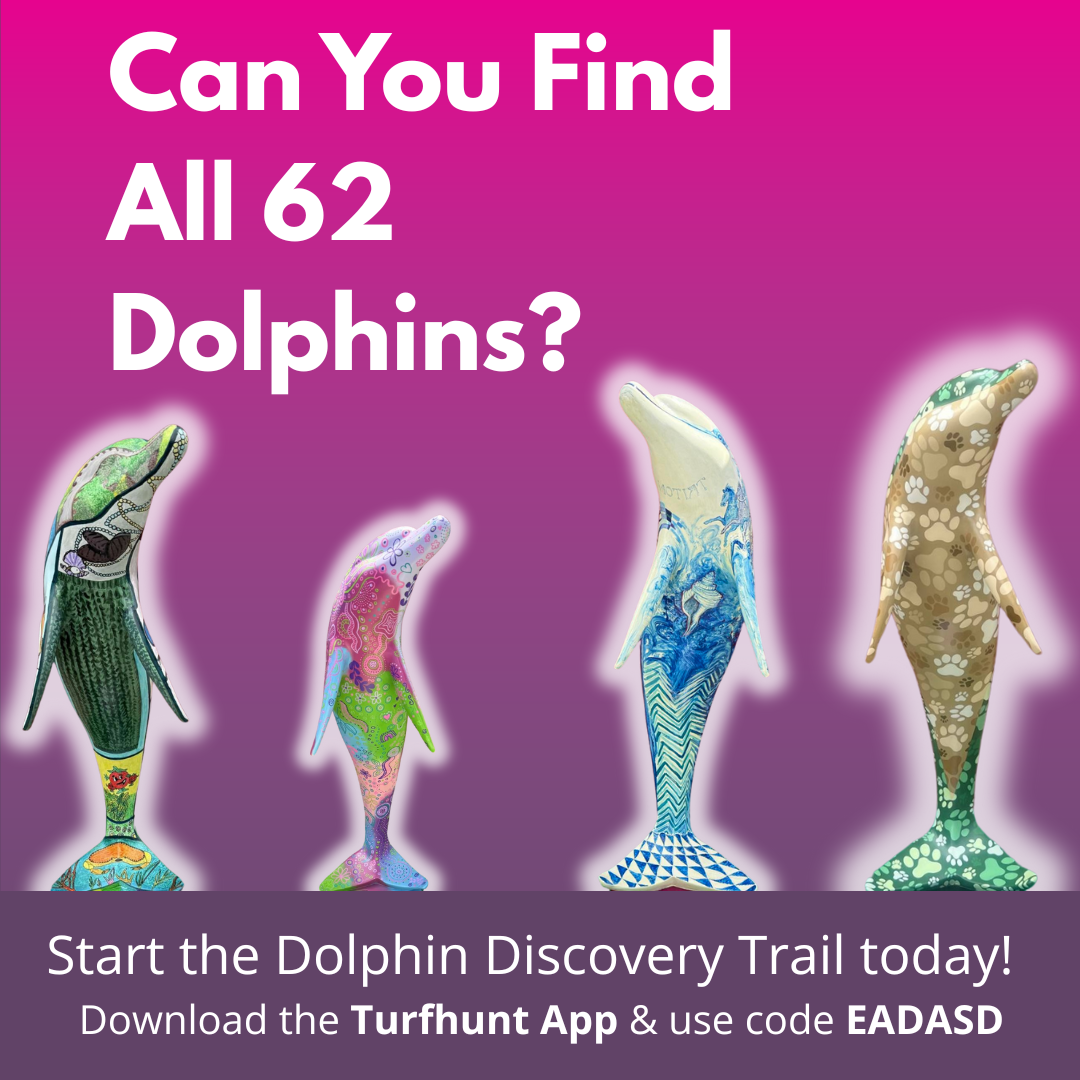 The Dolphin Discovery Trail is a community art trail features 62 beautifully decorated dolphin sculptures across Guernsey, raising funds and awareness for GSPCA and Autism Guernsey.